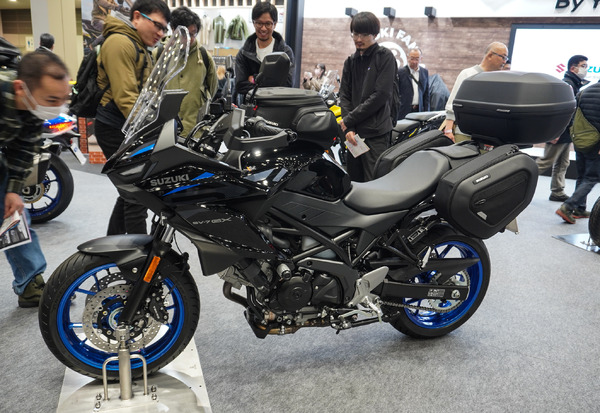 スズキが、「大阪モーターサイクルショー2026」の目玉として日本初公開をおこなった新型クロスオーバー『SV-7GX』。27日に開幕した東京会場では、装いも新たに、ツーリングアクセサリーを装着した「グラススパークルブラック」の車両がお目見えした。